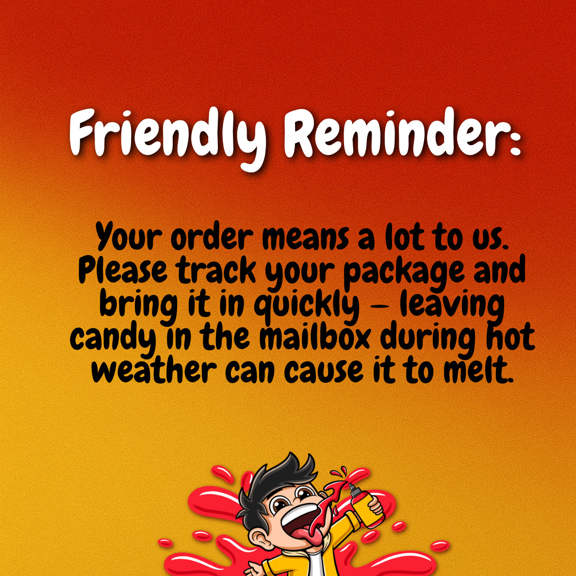 Do us a favor — keep an eye on your tracking and be ready when it gets delivered. We want you to catch your candy fresh and perfect. Don’t let it sit out — you waited for this. Also, be sure to provide the correct address to avoid any issues with delivery